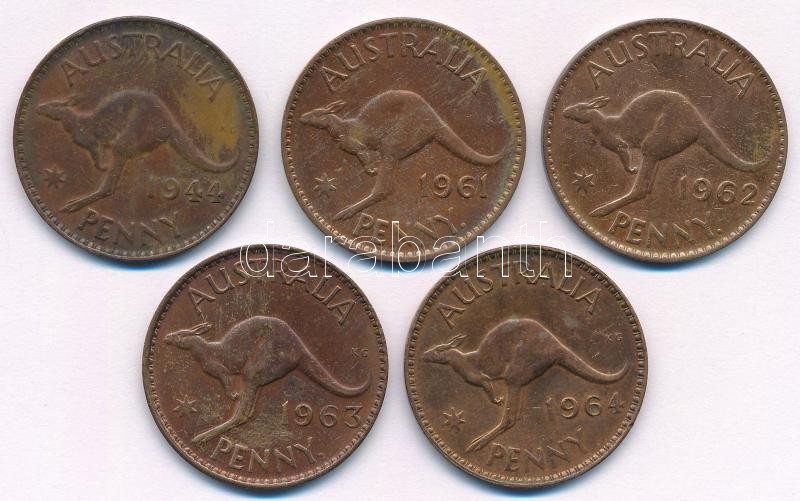 Australia 1944. 1 penny Br C:VF + 1961-1964. 1 penny Br (4xdiff) C:XF,VF