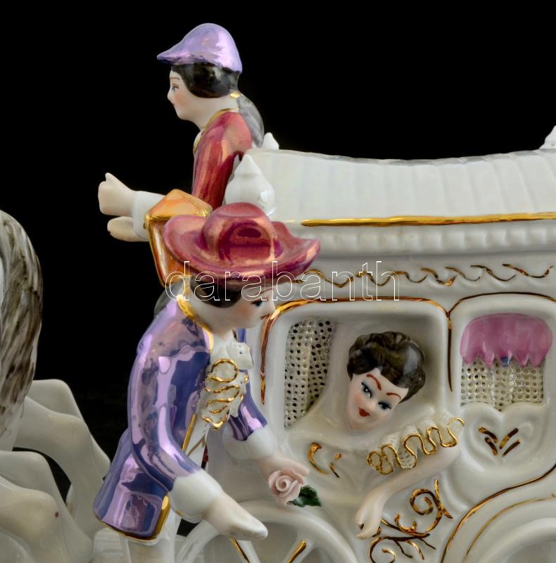 Roceram porcelán hintó figurákkal, kézzel festett, jelzett, apró kopás...