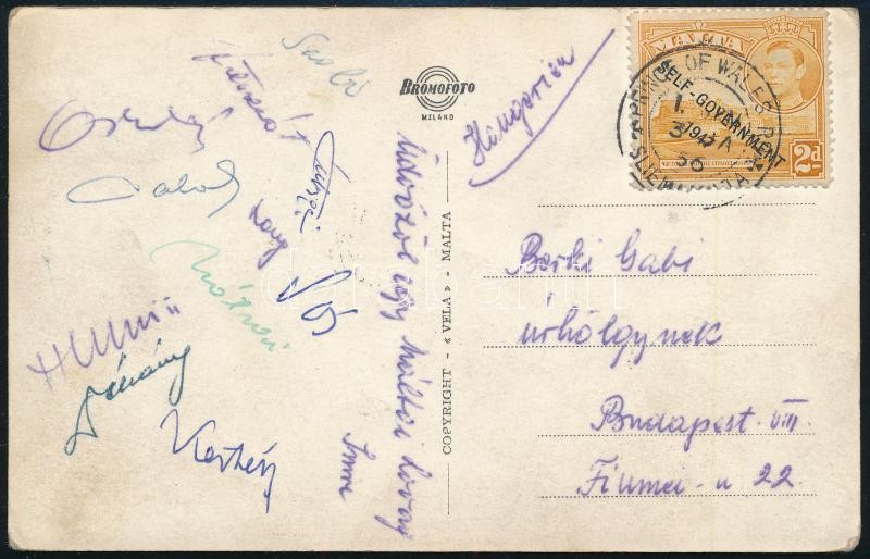 1947 Az FTC labdarúgói által Máltáról hazaküldött képeslap a játokosok... https://www.darabanth.com/en/38-Major-auction/38.1/Art-paper-and-other-collectibles/Autographs~15961/1947-Az-FTC-labdarugoi-altal-Maltarol-hazakuldott-kepeslap-a-jatokosok-Matrai-Dekany-~II2603631