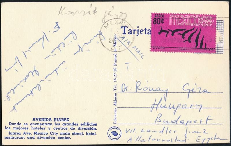 1988 Konrád János olimpiai bajnok vízilabdázó által írt képeslap Mexikóból.