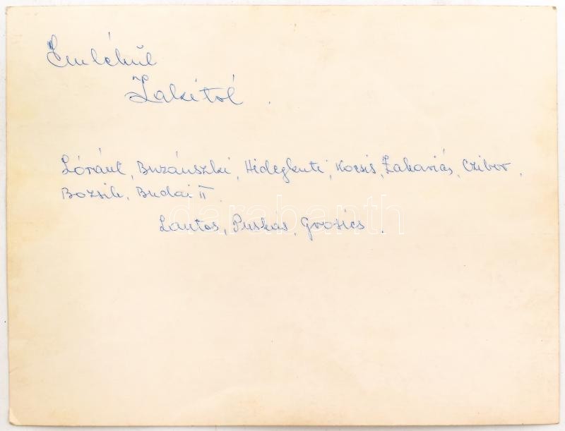 Description: Zakariás József (1924-1971) olimpiai bajnok labdarúgó, edző, az Aranycsapat tagja által írt sajátkezű levél, aláírt fotója (6x9 cm) + nagy méretű Aranycsapat fotó / Autograph letter and signed photo of Jozsef Zakariás, member of the Hungarian Golden football Team