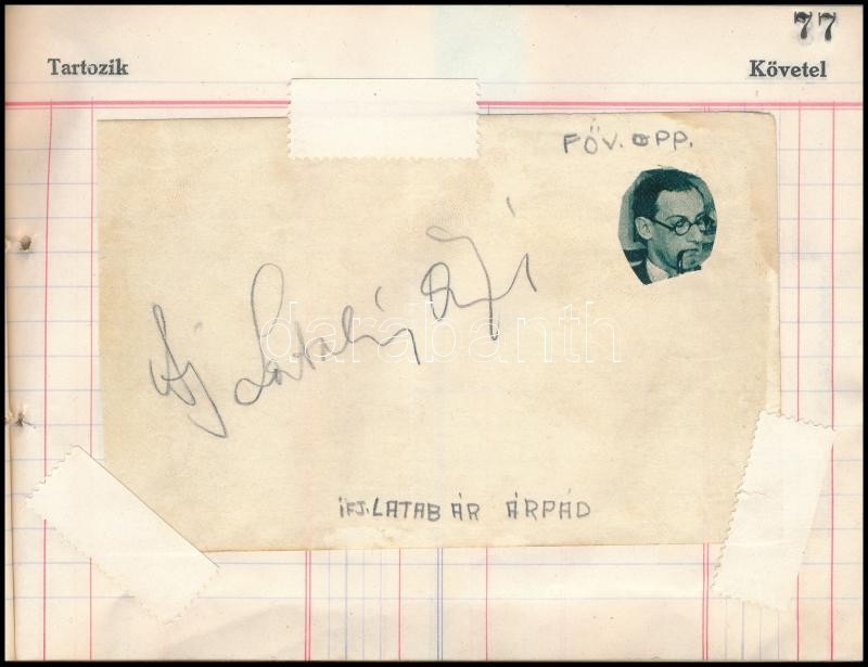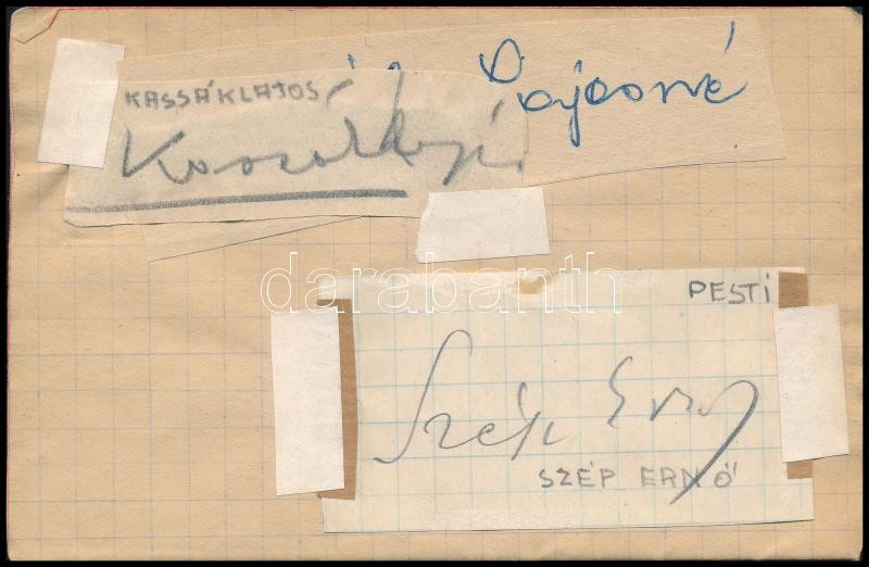 cca 1920-1940 Nagy autogram gyűjtemény, 7 füzetben és 1 borítékban, beragasztott és bírt aláírásokkal, bennük számos nagyon neves vagy ismert művésszel, köztük: Thomas Mann, Jávor Pál, Uray Tivadar, Somlay Arthur, Várkonyi Zoltán, Vaszari János (festő), ifj. Latabár Árpád, Szőke Szakáll, Beregi Oszkár, Basilides Mária, Székely Mihály, Dayka Margit, Pethes Sándor, Gozon Gyula, Tolnay Klára, Kabos Gyula, Páger Antal, Fejtő Ferenc, Baktay Ervin, Mühlbeck Károly, Kassák Lajos, Szép Ernő, Gaál Mózes, Feleky Kamill és mások aláírásaival.