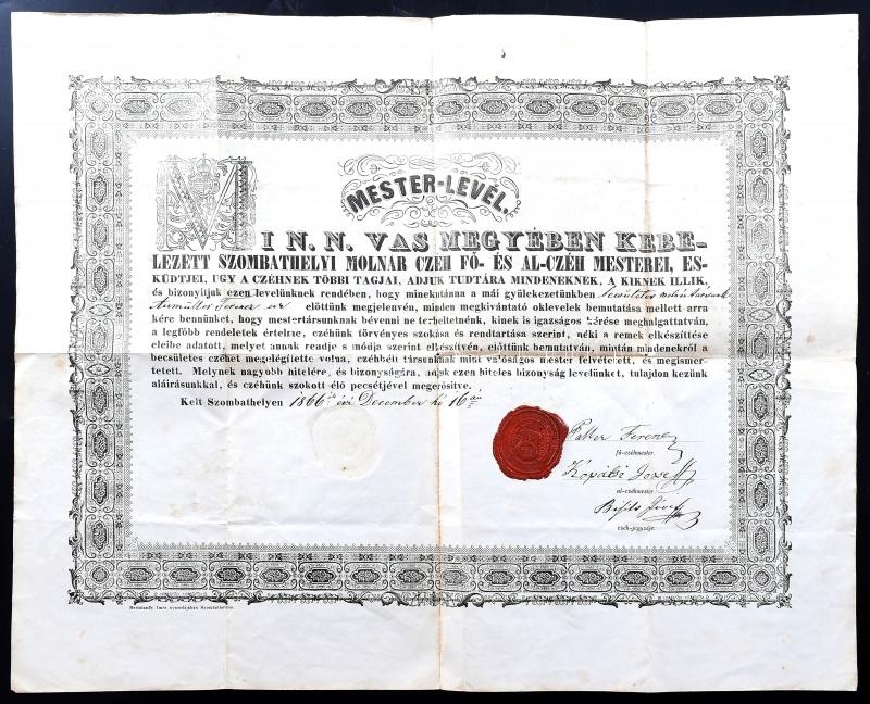 https://www.darabanth.com/en/38-Major-auction/38.1/Art-paper-and-other-collectibles/Documents~15581/1866-Szombathely-Diszes-molnar-ceh-mester-level-toredezett-viaszpecsettel-alairasokkal-~II2605197