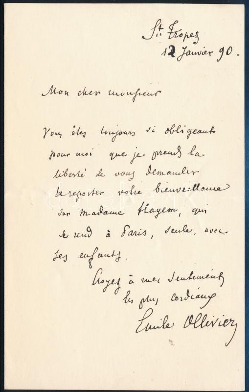 1894 Émile Ollivier (1825-1913) francia miniszterelnök, Liszt Ferenc v... https://www.darabanth.com/en/38-Major-auction/38.1/Art-paper-and-other-collectibles/Historical-documents-manuscripts~15582/1894-Emile-Ollivier-1825-1913-francia-miniszterelnok-Liszt-Ferenc-vejenek-autograf-levele-A~II2577453