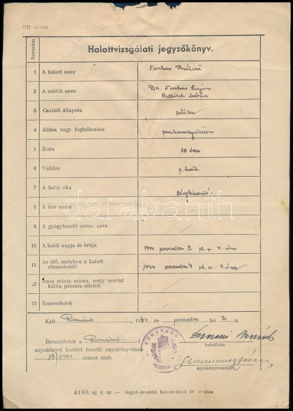 https://www.darabanth.com/en/38-Major-auction/38.1/Art-paper-and-other-collectibles/Judaica~15586/1944-Romand-munkaszolgalatos-halottvizsgalati-jegyzokonyve-halal-oka-vegkimerules~II2613412