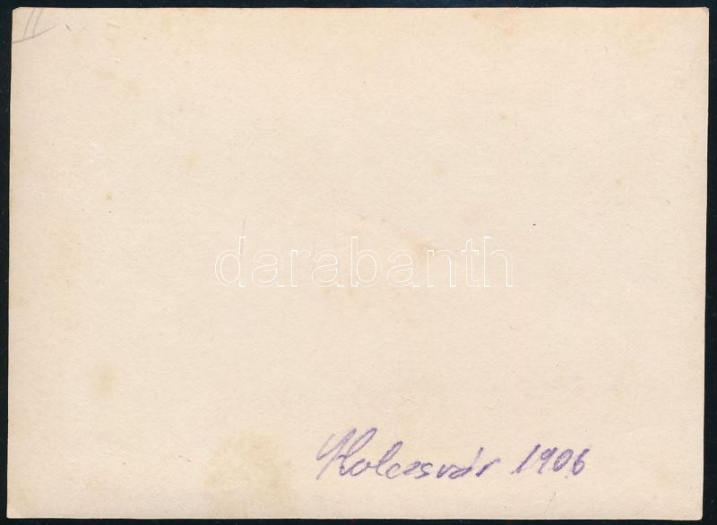 1906 Kolozsvár, Mátyás király tér, üzletek (Tamási Tamás és Fia, Szele Márton, Farkas Antal, Stein Bertalan, Erdélyi Bank), hátoldalán feliratozott fotó, 11x8 cm / Cluj, Mathias Rex square, shops, vintage photo, 11x8 cm