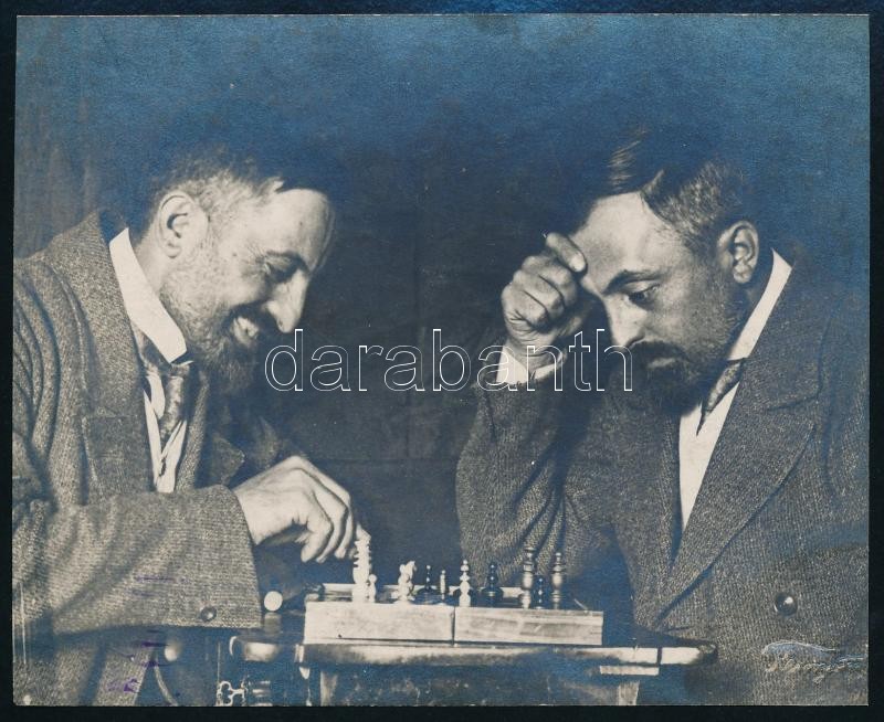 1916 Kerny István (1879-1963) budapesti fotóművész hagyatékából hidegpecséttel jelzett, vintage fotó, a szerző önmagával sakkozik, 11x13,5 cm