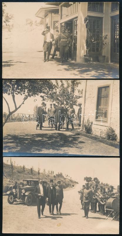 1924 Rudolf Nadolny (1873-1953) német diplomata, későbbi genfi küldöttségvezető és a német vöröskereszt elnöke nagyköveti kinevezése utáni megérkezése Ankarába, Törökországba, fogadtatásával, 5 db fotó, hátoldalon magyar nyelvű feliratozással, jó állapotban, 8,5×13,5 cm / Rudolf Nadolny German diplomat arrives in Ankara, 5 photos with Hungarian description on the verso