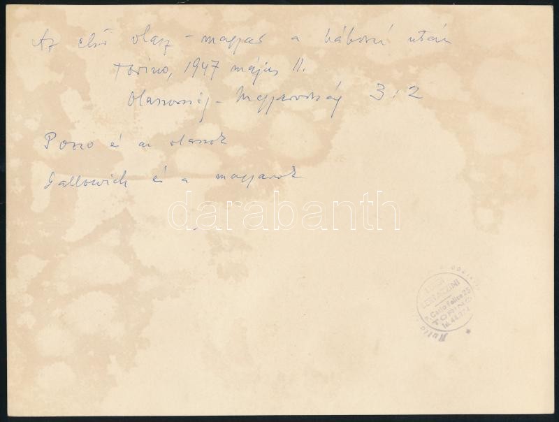 https://www.darabanth.com/en/38-Major-auction/38.1/Art-paper-and-other-collectibles/Photo~15584/1947-Az-elso-olasz-magyar-a-haboru-utan-Torino-1947-majus-11-Olaszorszag-Magyarorszag-3~II2613037