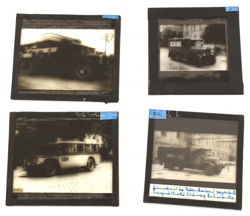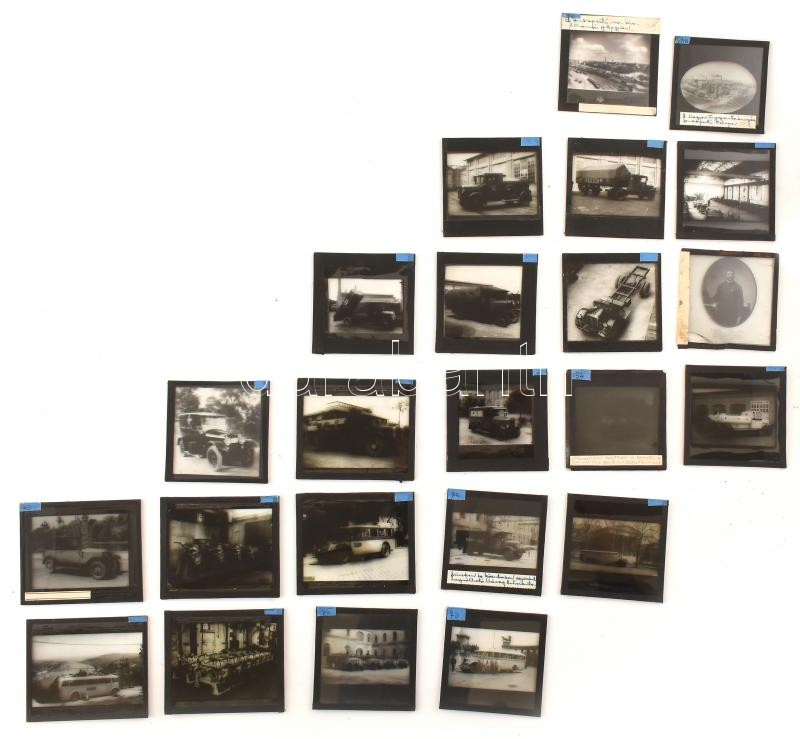 Description: cca 1910-1930 Ganz Mávag járművek. Budapesti és városi cégeknek készített autók, hókotrók, teherautók, tűzoltó és egyéb autók. néhány képpel a gyártelepről. Összesen 22 db üveg dia / cca 1910-1930 Ganz Mávag vehicles. Buses, trucks and other special vehicles made for cities. 22 glass slides 8x8 cm