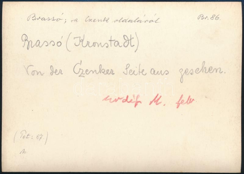 cca 1910 Brassó, a Czenk oldalról, Erdélyi Mór felvétele, hátulján feliratozva, 11,5×16 cm / Brasov, with notes on its back, 11,5×16 cm