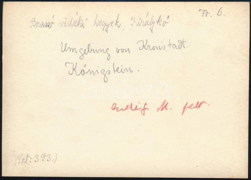 cca 1910 Brassó-vidéki hegyek, Királykő, Erdélyi Mór felvétele, hátulján feliratozva, 11,5×16 cm / / Brasov (Kronstadt), Piatra Craiului, mountains, vintage photo by Mór Erdélyi, 16x11,5 cm