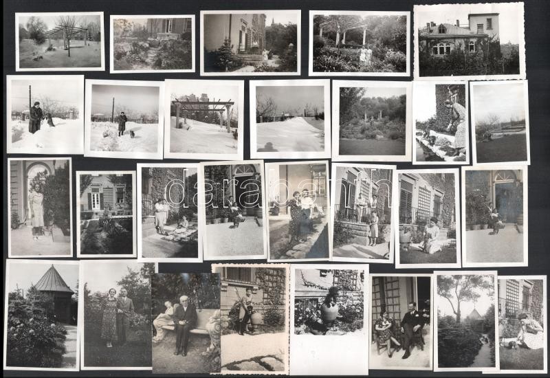 cca 1920-1930 Budapest, Orom utca 24., képek az épületről, annak kertjéről, családi életképek a kertben, stb., vegyes fotó tétel