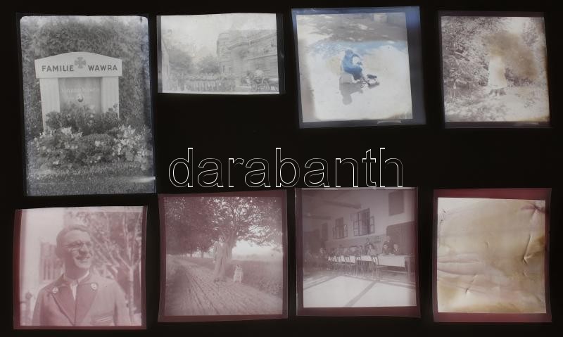 Description: cca 1940 előtt készült felvételek sokféle témáról, a Flóris bonbonos doboz felirata szerint ezek ún. ,,Knipszek", 101 db vintage NEGATÍV, 6x9 cm és 3x4 cm között