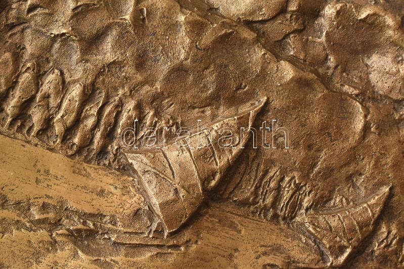 Szöllőssy Enikő (1939-): Balaton Tihanynál hullámlovasokkal. Bronz relief, fa hordozón, jelzés nélkül, 16×26x1,5 cm