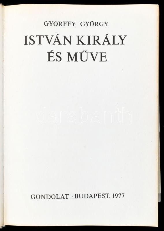 Györffy György: István király és műve. Bp.,1977, Gondolat. Első kiadás... https://www.darabanth.com/en/38-Major-auction/38.1/Books/Books-History~15958/Gyorffy-Gyorgy-Istvan-kiraly-es-muve-Bp-1977-Gondolat-Elso-kiadas-Kiadoi-egeszvaszo~II2593393