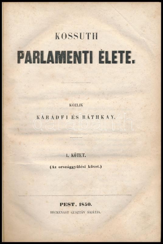 (Szilágyi Sándor) Karádfi és (Ráth György) Ráthkay: Kossuth parlamenti... https://www.darabanth.com/en/38-Major-auction/38.1/Books/Books-History~15958/Szilagyi-Sandor-Karadfi-es-Rath-Gyorgy-Rathkay-Kossuth-parlamenti-elete-I-II--Pest-~II2600293