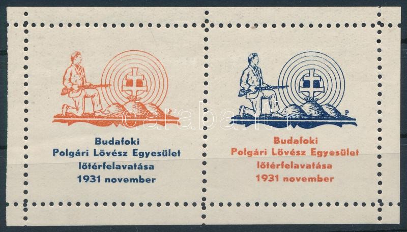 1931 Budafoki Polgári Lövész Egyesület lőtérfelavatása levélzáró kisív / label mini sheet