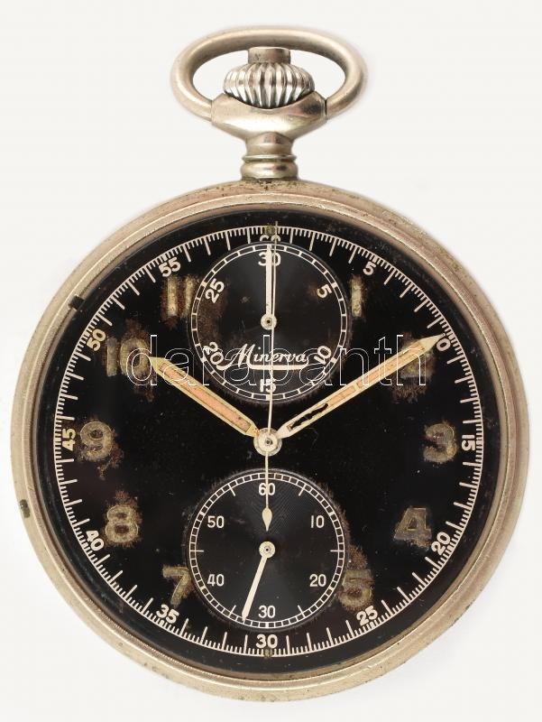II. világháborús Minerva katonai, kronográfos zsebóra. Működő, jó álla... https://www.darabanth.com/en/38-Major-auction/38.1/MIlitary/Military~15963/II-vilaghaborus-Minerva-katonai-kronografos-zsebora-Mukodo-jo-allapotban-szamlapon-a~II2598032