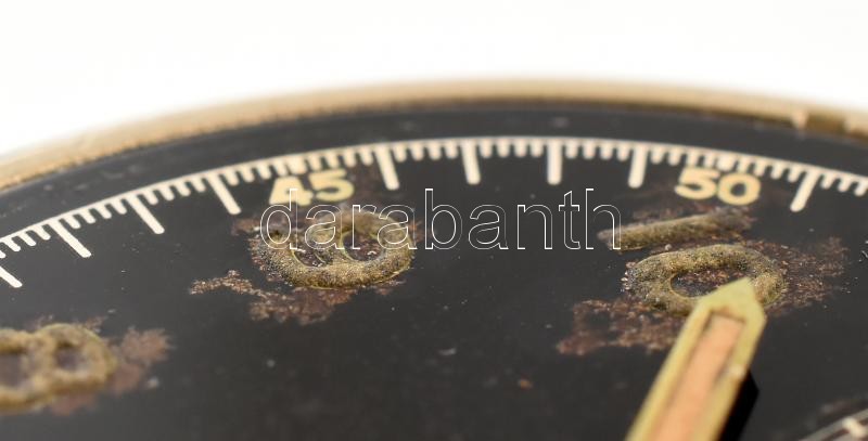 Description: II. világháborús Minerva katonai, kronográfos zsebóra. Működő, jó állapotban, számlapon az óra számjegyek korrodáltak. / Wold War II. Minerva German military pocket watch with cronograph. Working well, numerals on dial are worn. d: 50 mm