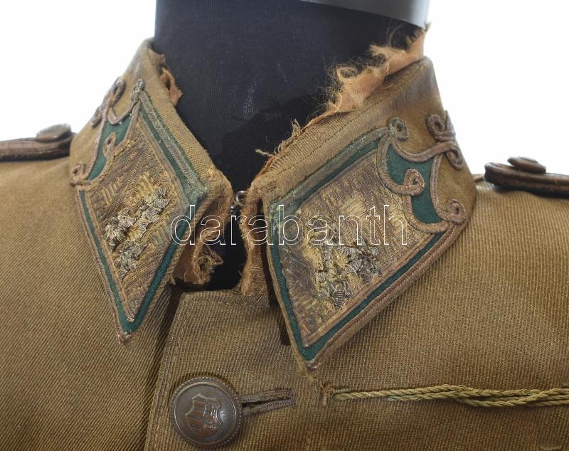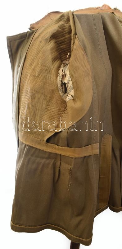 Description: M. kir. honv. átmeneti 1941M/1946M (gombok) gyalogos táboribarna zubbony ezredesi rendfokozat elzésekkel. gallérjánál sérült / Hungarian officer uniform, some damage