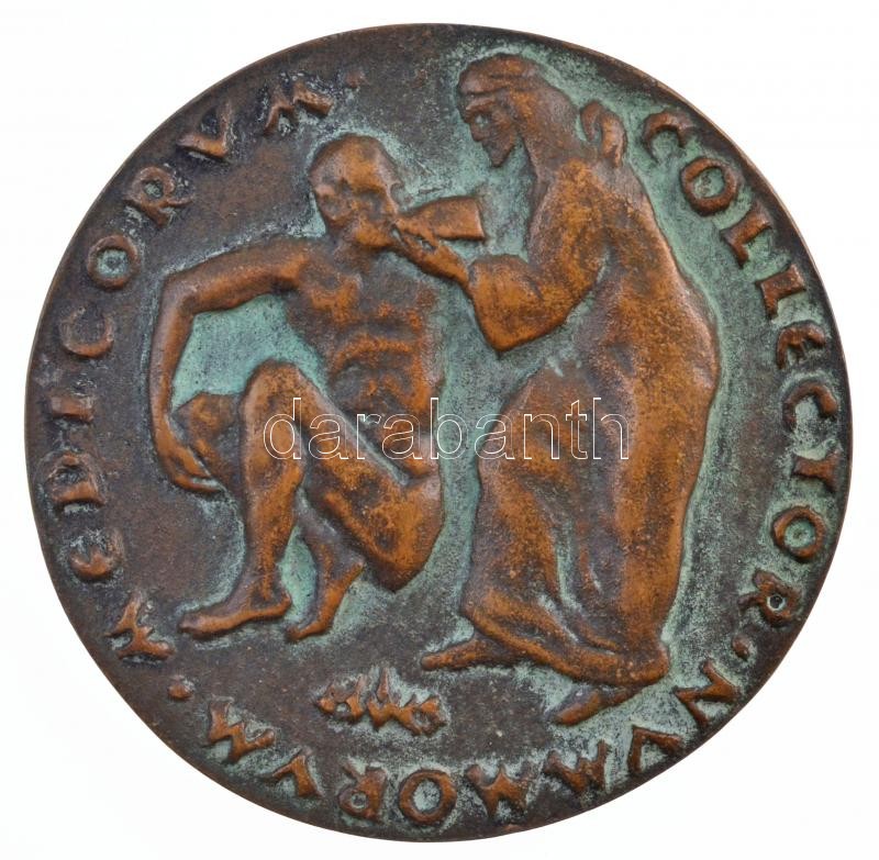 Hungary DN "Gyula Varannai / Medical coin collector (medicorum collector nummorum)" two-sided Br plaque with marked serial number on the edge:"5". Sign.:Ferenc Csúcs (1905-1999) (81mm) C:XF patina