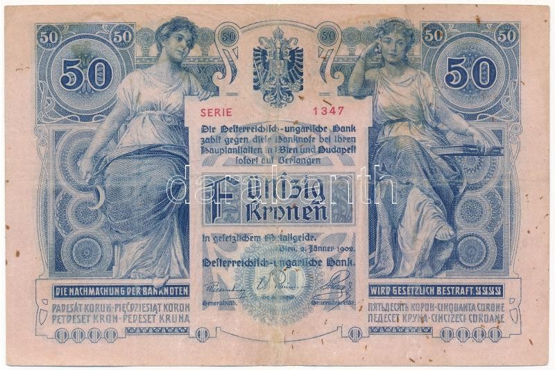 1902. 50K "1347 03068" T:III- fo. / Hungary 1902. 50 Korona ...