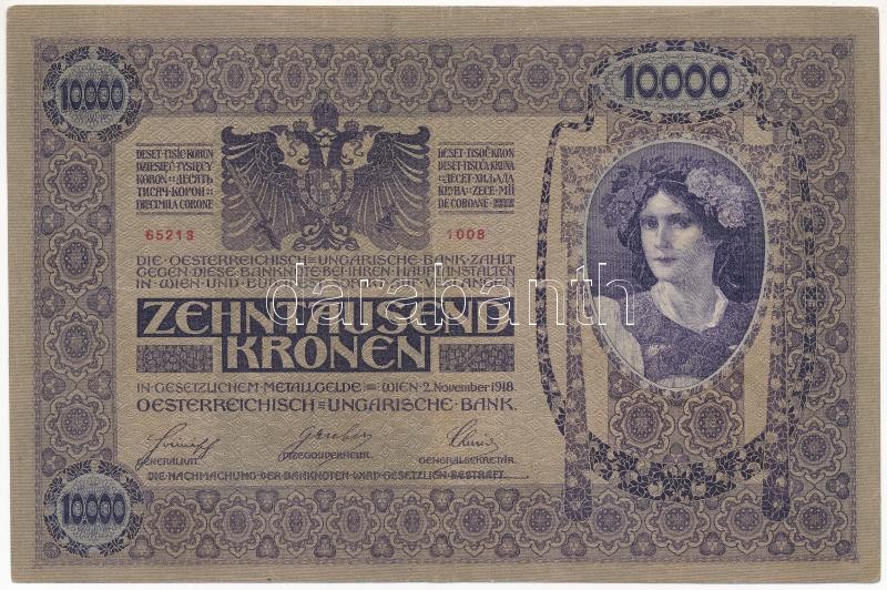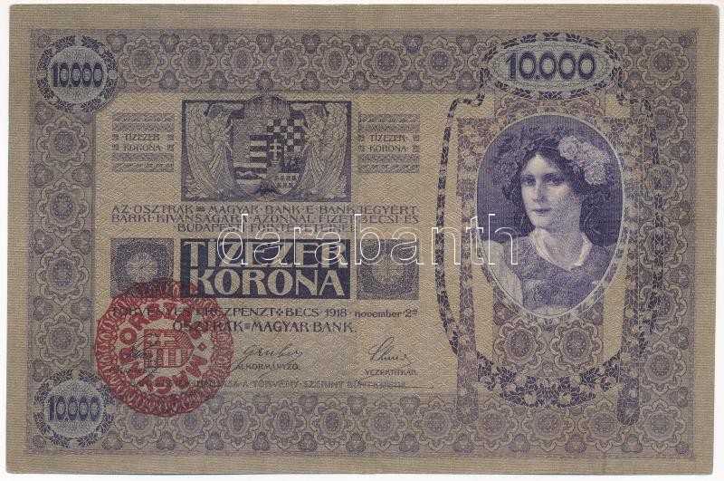 https://www.darabanth.com/en/38-Major-auction/38.1/Numismatics/Hungarian-and-foreign-banknotes~15627/1918-10000K-piros-MAGYARORSZAG-felulbelyegzessel-1008-65213-TIII-Hungary-1918-10000-~II2612400