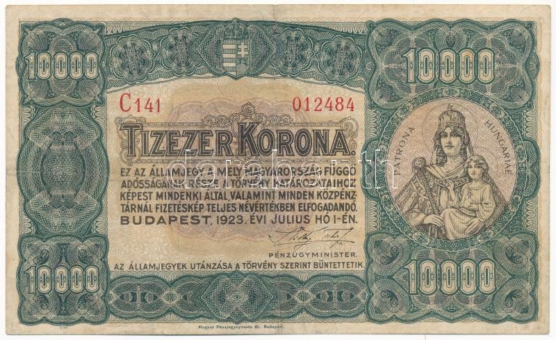 https://www.darabanth.com/en/38-Major-auction/38.1/Numismatics/Hungarian-and-foreign-banknotes~15627/1923-10000K-Magyar-Penzjegynyomda-Rt-jelolessel-C141-012484-TIII-Hungary-1923-10000-~II2612393