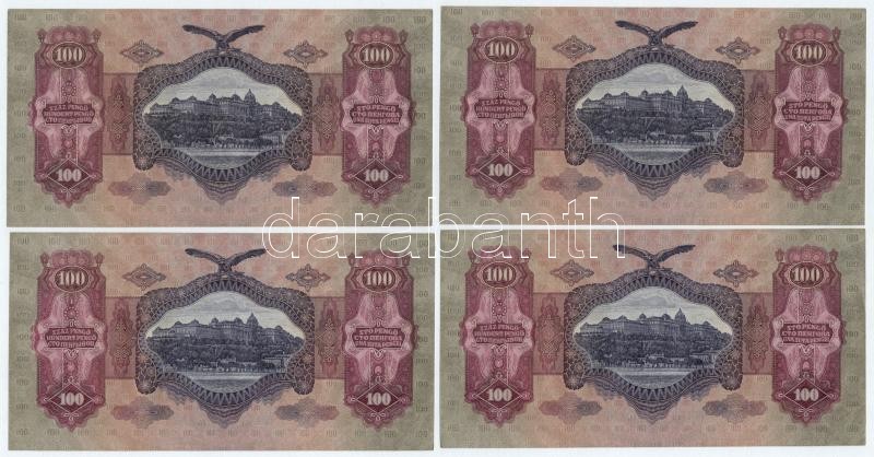 1930. 100P (4x) sorszámkövetők "E 493 053533 - E 493 053536" T:I / Hungary 1930. 100 Pengő (4x) consecutive serials "E 493 053533 - E 493 053536" C:UNC
