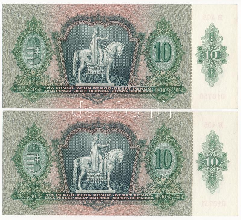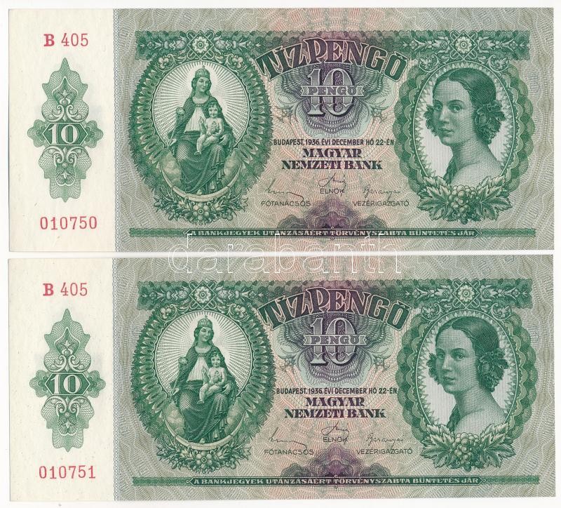 1936. 10P (2x) sorszámkövetők "B 405 010750 - B 405 010751" T:I / Hungary 1936. 10 Pengő (2x) consecutive serials "B 405 010750 - B 405 010751" C:UNC