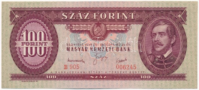 1949. 100Ft "B 905 006245" nyomdai papírráncokkal T:I / Hungary 1949. 100 Forint "B 905 006245" with printing creases
