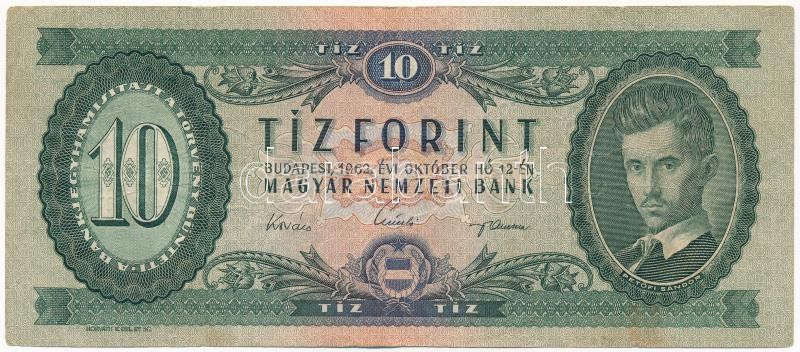 Description: 1962. 10Ft "A 648 159544" fordított hátlapi "01"-es alapnyomattal T:III / Hungary 1962. 10 Forint "A 648 159544" with reversed base print "01" on backside C:F