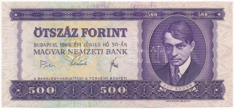 1969. 500Ft "E737 041938" nyomdai festékfoltokkal T:I / Hung...