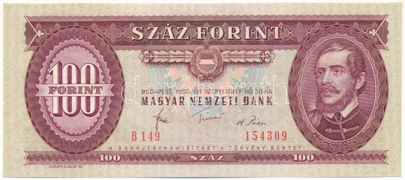 1980. 100Ft "B 149 154309" T:I / Hungary 1980. 100 Forint "B 149 154309" C:UNC
