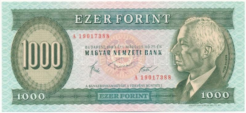 1983. március 25. 1000Ft "A 19017388" T:I / Hungary 1983. March 25th 1000Ft "A 19017388" C:UNC
