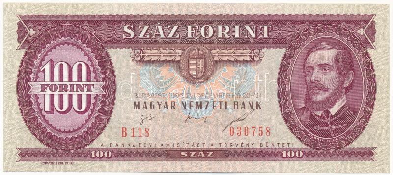 1995. 100Ft "B 118 030758" T:I / Hungary 1995. 100 Forint "B 118 030758" C:UNC