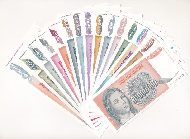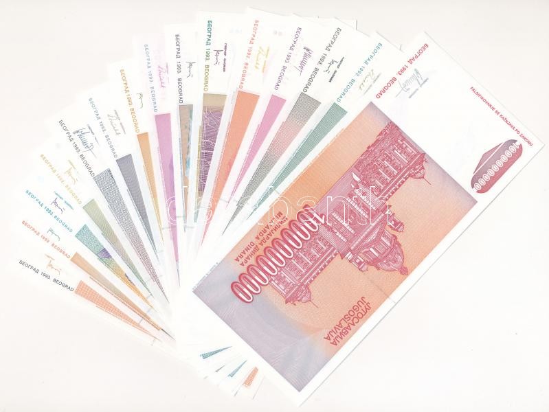 Jugoszlávia 1992. 100D + 500D + 1000D + 5000D "ZA" pótkiadás! + 10.000D + 50.000D + 1993. 100.000D + 500.000D + 1.000.000D + 5.000.000D + 10.000.000D + 50.000.000D + 100.000.000D + 500.000.000D + 1.000.000.000D + 10.000.000.000D T:I / Yugoslavia 1992. 100 Dinara + 500 Dinara + 1000 Dinara + 5000 Dinara "ZA" replacement issue! + 10.000 Dinara + 50.000 Dinara + 1993. 100.000 Dinara + 500.000 Dinara + 1.000.000 Dinara + 5.000.000 Dinara + 10.000.000 Dinara + 50.000.000 Dinara + 100.000.000 Dinara + 500.000.000 Dinara + 1.000.000.000 Dinara + 10.000.000.000 Dinara C:UNC