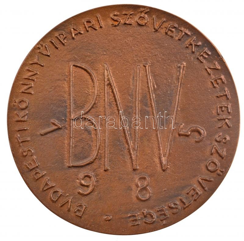 Borsos Miklós (1906-1990) 1985. "Budapesti Könnyűipari Szövetkezetek Szövetsége 1985" kétoldalas, öntött bronz emlékérem (98mm) T:1- / Hungary 1985. "Budapesti Könnyűipari Szövetkezetek Szövetsége 1985" double-sided cast bronze commemorative medallion (98mm) C:AU