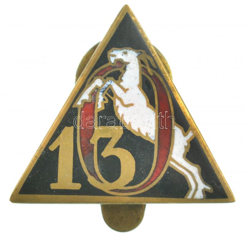 1943. A m. kir. 13. könnyű hadosztály emlékjelvénye, zománcozott bronz... https://www.darabanth.com/en/38-Major-auction/38.1/Numismatics/Military~15950/1943-A-m-kir-13-konnyu-hadosztaly-emlekjelvenye-zomancozott-bronz-gomblyukjelveny-hatl~II2557922