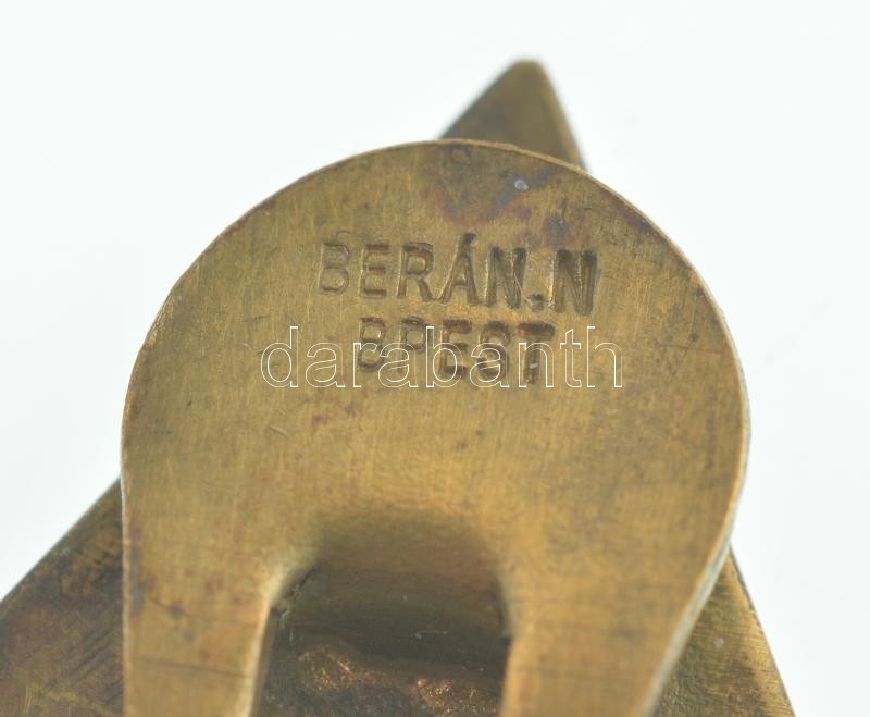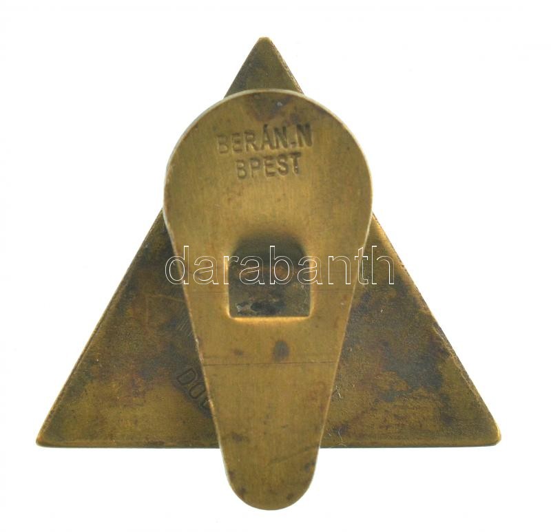Description: 1943. A m. kir. 13. könnyű hadosztály emlékjelvénye, zománcozott bronz gomblyukjelvény, hátlapon két helyen is "BERÁN N." gyártói jelzéssel (22x25mm) T:AU / Hungary 1943. Enamelled bronze buttonhole badge of the 13th Hungarian Royal Light Division. With "BERÁN N." maker's mark at two places (22x25mm) C:AU Sallay: 100.