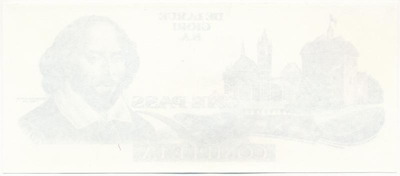 Description: Svájc ~2000. Egyoldalas bankjegy tervezet "One Pass (Belépő?)" nyomattal, "Shakespeare" hátlapi tervezettel, a De La Rue bankjegynyomda kiadásában T:I- /
