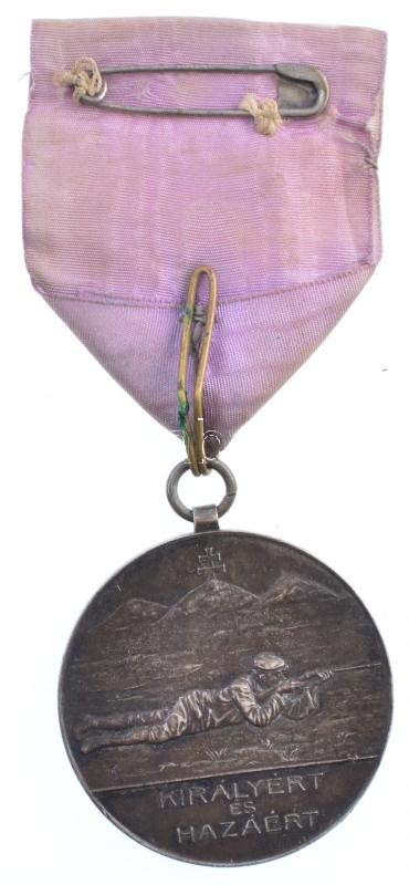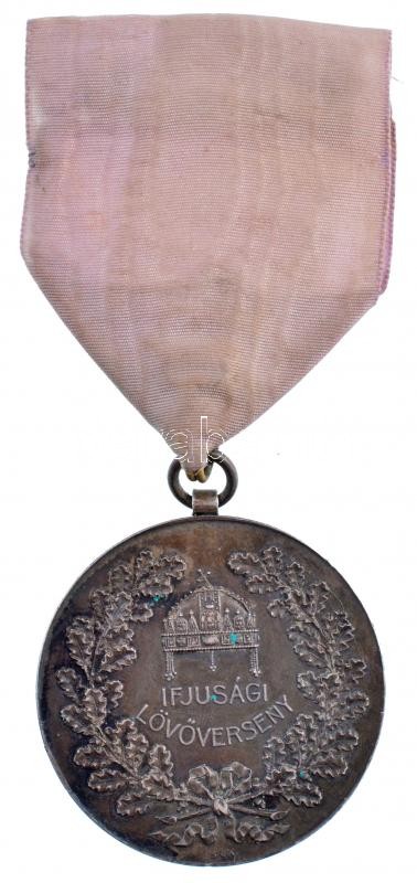 ~1910. "Ifjúsági Lövőverseny / Királyért és hazáért" fémjelzetlen Ag sportérem szalagon, "S.G.A. (Scheid ezüstáru és éremgyár)" gyártói jelzéssel (20g/36mm) T:2 patina / Hungary ~1910. "Ifjúsági Lövőverseny / Királyért és hazáért (Youth Shooting Competition / For the King and the Country)" Ag sport medal without hallmark, with ribbon and "S.G.A. (Scheid Silverware and Medal Factory)" makers mark (20g/36mm) C:XF patina