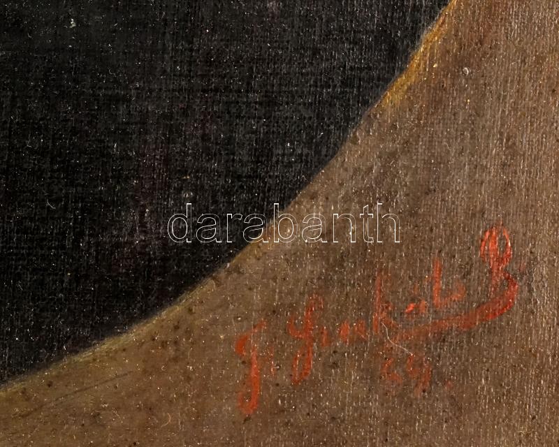 Szakáts József (1820-1870): Női portré. Olaj, vászon, jelezve jobbra lent. Restaurált, dublírozott. 59x46,5 cm. Dekoratív fakeretben. Szakáts József Brassóban volt rajztanár, de az 1848-as szabadságharc után, tizenhét évig volt fogságban. Miután kiszabadult, Kölnbe ment, ahol portrékat és tájképeket festett. Festményei ritkán tűnnek fel a műkereskedelemben, aukción az utóbbi években tudomásunk szerint egy sem szerepelt.