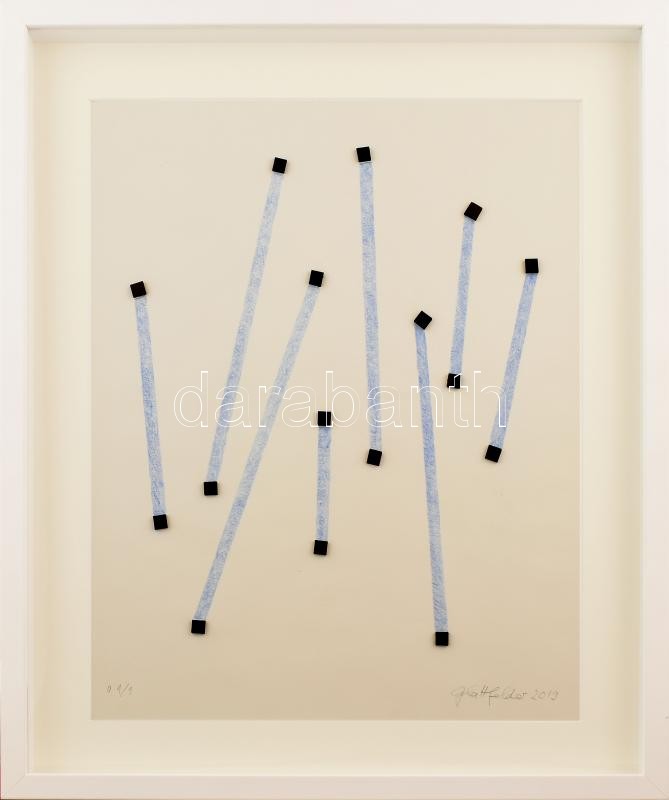 Hans Jörg Glattfelder (1939-): Vektorok, 2019. Színes ceruza, kollázs, papír, jelzett, számozott (0 1/1), üvegezett fakeretben, 45×57 cm / Hans Jörg Glattfelder (1939-), Swiss artist: Vectors. Pencil and collage on paper, signed, numbered (0 1/1), framed with glass, 45×57 cm