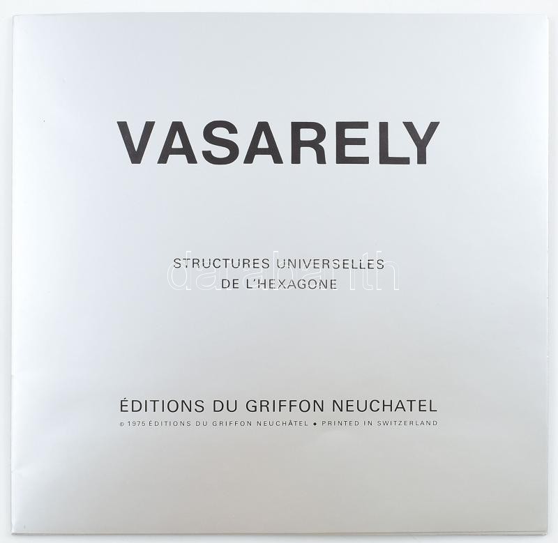Vasarely Victor (1908-1997): Structurelles universelles de l'hexagone, mappa. 8 db heliogravűr, papír, mindegyik külön lapon. Neuchatel, 1975, Éditions du Griffon. Eredeti, kiadói mappában. Lapméret: 27x27 cm. Komplett, hiánytalan! / Victor Vasarely (1908-1997): Structurelles universelles de l'hexagone. Photogravure on paper, 8 pcs. Neuchatel, 1975, Éditions du Griffon. 27x27 cm The album is complete!
