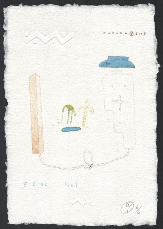 Wahorn András (1953-): Blue hat. Computer print, merített papír, jelze... https://www.darabanth.com/en/38-Major-auction/38.1/Paintings-and-graphics/Contemporary-paintongs-and-graphics~15751/Wahorn-Andras-1953-Blue-hat-Computer-print-meritett-papir-jelzett-szamozott-66-lapmC3~II2612911