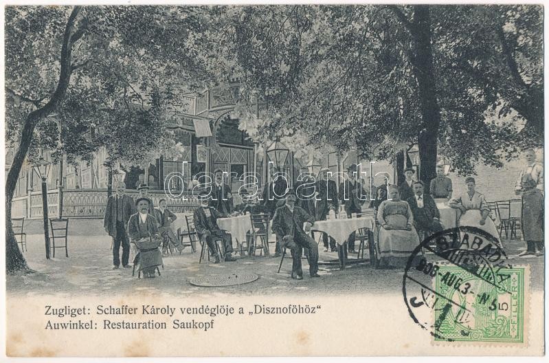 https://www.darabanth.com/en/38-Major-auction/38.1/Postcards/Hungary~15644/1906-Budapest-XII-Zugliget-Schaffer-Karoly-vendegloje-a-Disznofohoz-vendegek-es-pincerek~II2571684