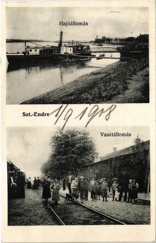 1908 Szentendre, Szt.-Endre; hajóállomás, vasútállomás (EB)