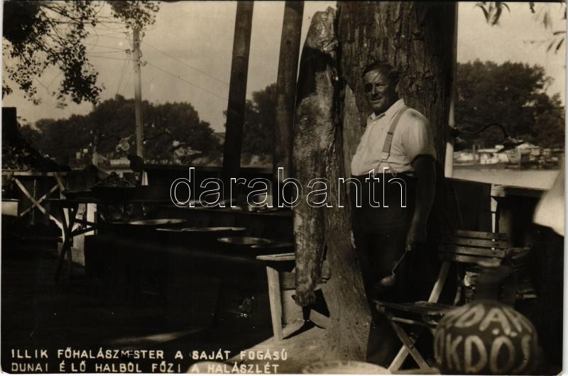 Budapest IV. Népsziget, Illik Halászcsárda, Illik Viktor főhalászmeste... https://www.darabanth.com/en/38-Major-auction/38.1/Postcards/Hungary~15644/Budapest-IV-Nepsziget-Illik-Halaszcsarda-Illik-Viktor-fohalaszmester-a-sajat-fogasu-dunai~II2607316